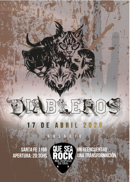 Diableros se presenta el jueves 17 de abril en Rosario con un show que promete ser especial: «Un reencuentro, una transformación». La cita es en Que Sea Rock Multiespacio Cultural (Santa Fe 1166), con apertura de puertas a las 20:30 horas.